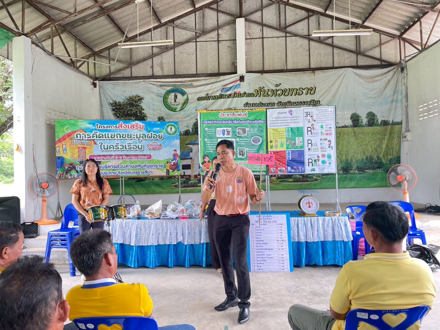 นางสุพิตร ชานอก รองนายกองค์การบริหารส่วนตำบลหันห้วยทราย เป็นประธานเปิดโครงการส่งเสริมการคัดแยกขยะมูลฝอยในครัวเรือน ประจำปีงบประมาณ พ.ศ.2568 เพื่อสร้างความตระหนักและการมีส่วนร่วมของประชาชนในการลดปริมาณขยะมูลฝอยและอนุรักษ์ทรัพยากรธรรมชาติและสิ่งแวดล้อม รวมถึงเป็นการสร้างรายได้และความคุ้มครองให้กับสมาชิกในครัวเรือน ซึ่งการคัดแยกขยะก่อนทิ้งในครัวเรือนจะช่วยลดปริมาณขยะในครัวเรือน และลดปัญหาขยะที่ตกค้างตามชุมชนทำให้สิ่งแวดล้อมได้เป็นอย่างมาก อีกทั้งยังเป็นการลดการใช้ทรัพยากรธรรมชาติลดการใช้พลังงานและลดมลพิษที่จะเกิดผลกระทบต่อสิ่งแวดล้อม