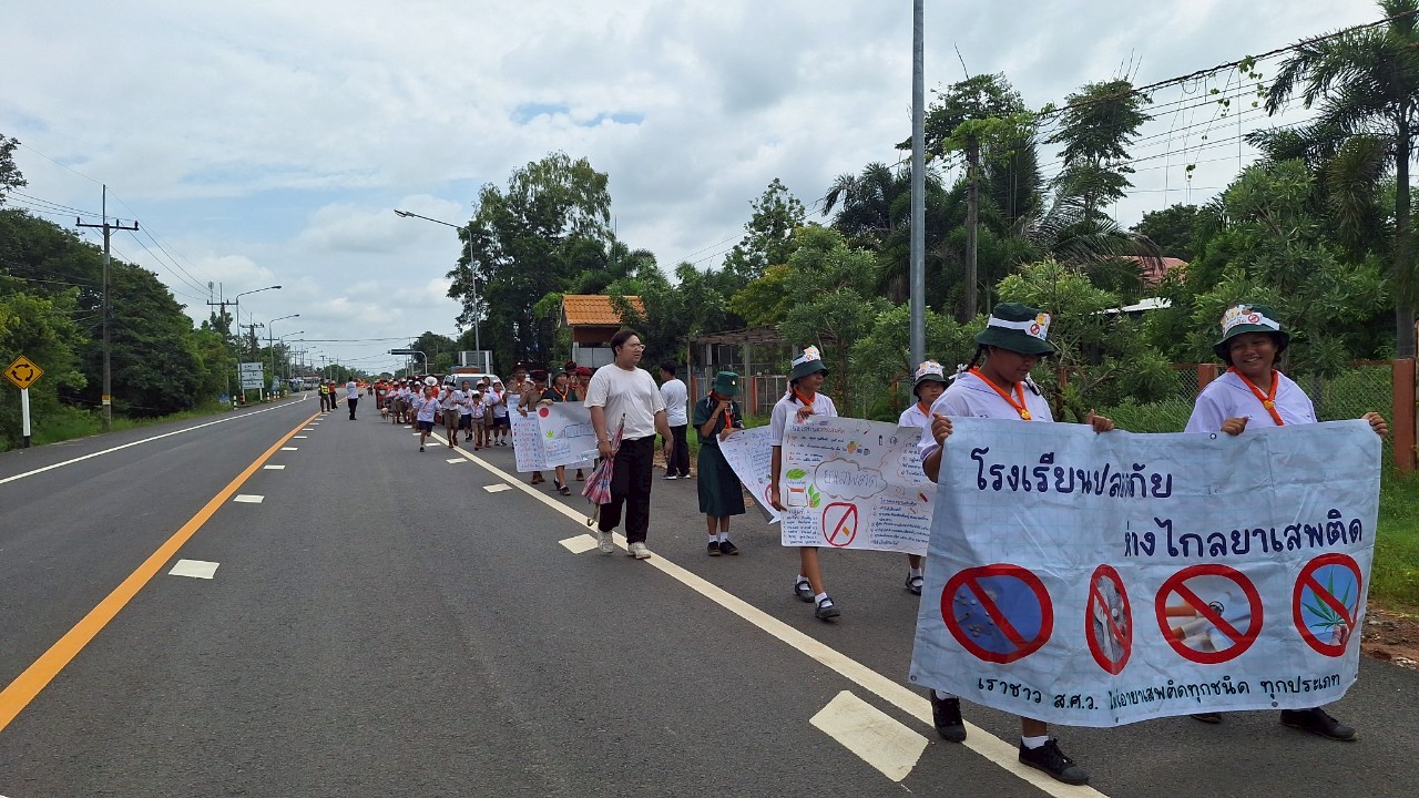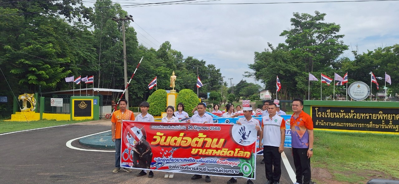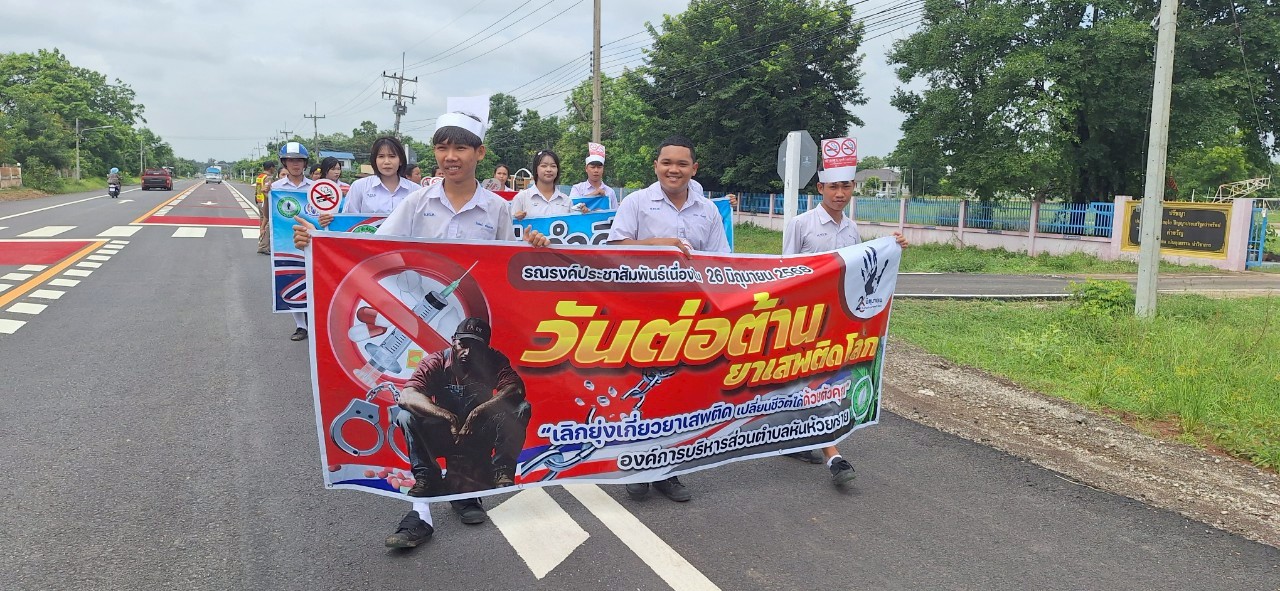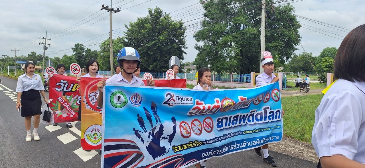 องค์การบริหารส่วนตำบลหันห้วยทราย จัดกิจกรรมเดินรณรงค์ป้องกันและแก้ไขปัญหายาเสพติด เนื่องในวันต่อต้านยาเสพติดโลก ประจำปี 2568 และโรคพิษสุนัขบ้า