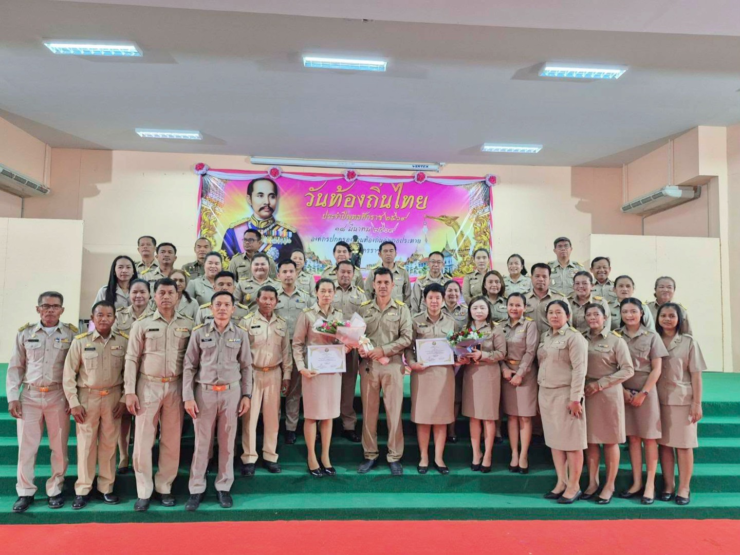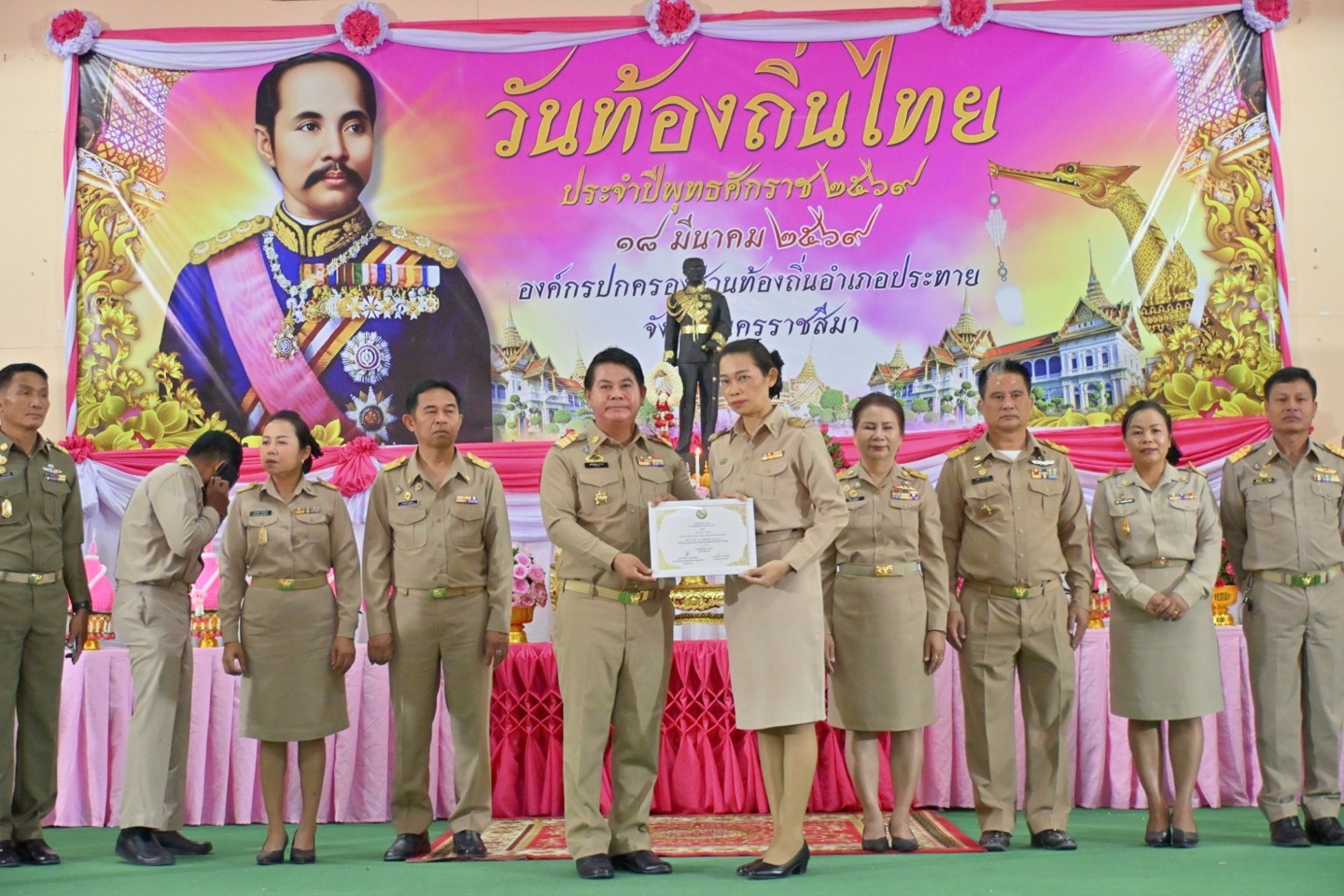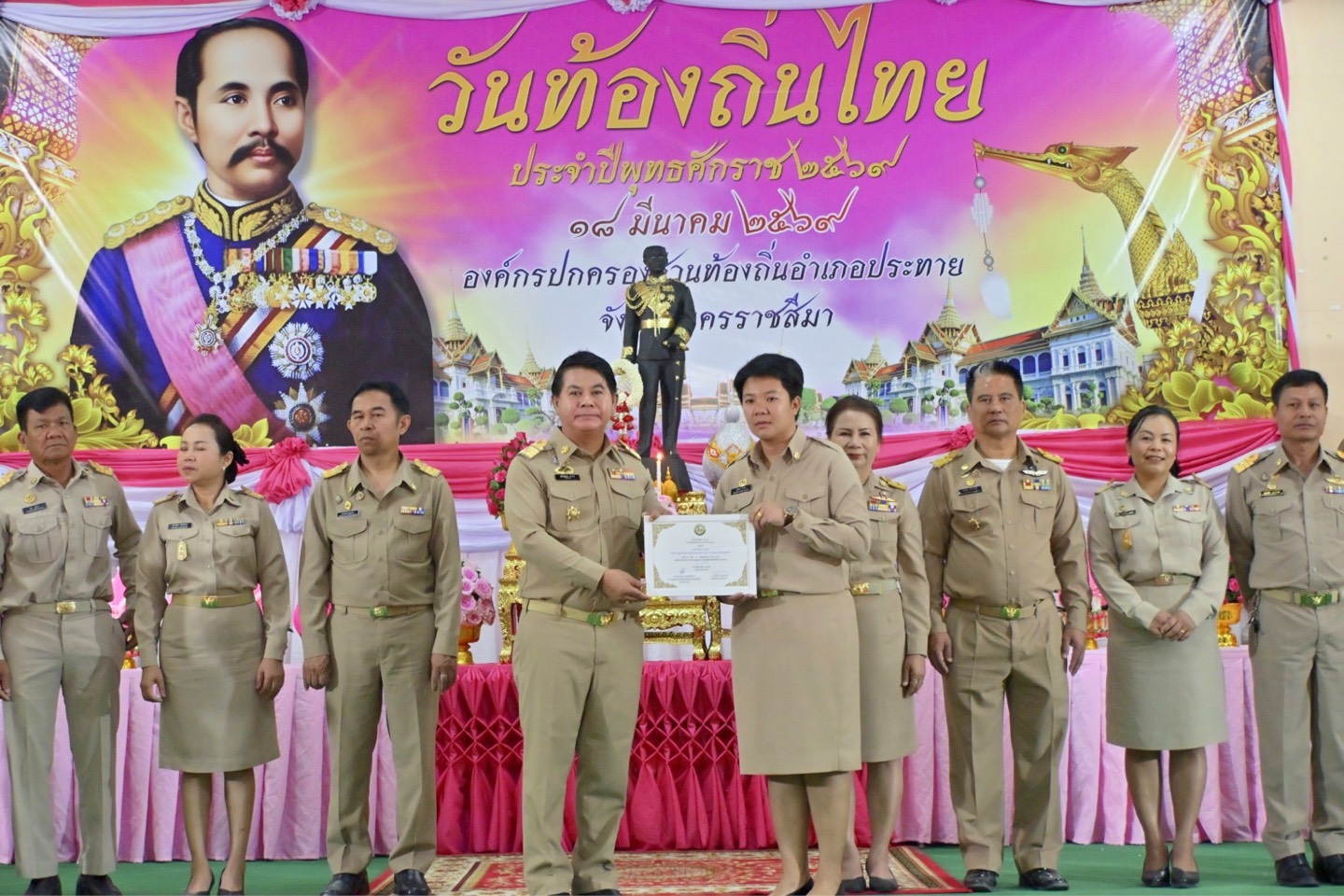 นายชัยฤทธิ์ แตงเกิด นายกองค์การบริหารส่วนตำบลหันห้วยทราย พร้อมด้วย คณะผู้บริหาร สมาชิกสภาฯ พนักงานส่วนตำบล เจ้าหน้าที่ ได้เข้าร่วมงาน วันท้องถิ่นไทย ประจำปี 2569 วางพานพุ่มดอกไม้ หน้าพระบรมรูปรัชกาลที่ 5 เพื่อรำลึกถึงพระมหากรุณาธิคุณของพระบาทสมเด็จพระจุลจอมเกล้าเจ้าอยู่หัวที่ได้ทรงมีพระบรมราชโองการให้ยกฐานะตำบลท่าฉลอมขึ้นเป็น สุขาภิบาลท่าฉลอม นับเป็นจุดเริ่มต้นของการกระจายอำนาจการปกครองให้แก่ ประชาชนในท้องถิ่น โดยมีนายฐนัญญ์ภพ ดาราย นายอำเภอประทายเป็นประธานฯ และร่วมแสดงความยินดีกับ นางสาวอรทัย วรยันต์ เจ้าพนักงานธุรการ และ นางสาวสุรีรัตน์ ชานอก ผู้ช่วยนักวิเคราะห์นโยบายและแผน ที่ได้รับรางวัล คนดีศรีท้องถิ่น ประจำปี 2569 ณ หอประชุมโรงเรียนประทาย