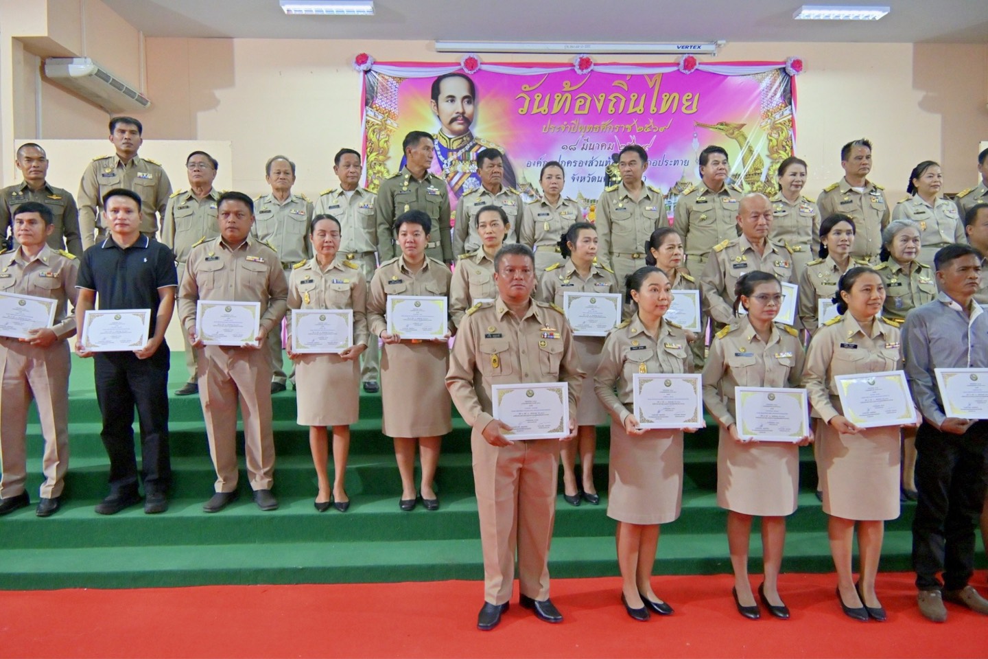 นายชัยฤทธิ์ แตงเกิด นายกองค์การบริหารส่วนตำบลหันห้วยทราย พร้อมด้วย คณะผู้บริหาร สมาชิกสภาฯ พนักงานส่วนตำบล เจ้าหน้าที่ ได้เข้าร่วมงาน วันท้องถิ่นไทย ประจำปี 2569 วางพานพุ่มดอกไม้ หน้าพระบรมรูปรัชกาลที่ 5 เพื่อรำลึกถึงพระมหากรุณาธิคุณของพระบาทสมเด็จพระจุลจอมเกล้าเจ้าอยู่หัวที่ได้ทรงมีพระบรมราชโองการให้ยกฐานะตำบลท่าฉลอมขึ้นเป็น สุขาภิบาลท่าฉลอม นับเป็นจุดเริ่มต้นของการกระจายอำนาจการปกครองให้แก่ ประชาชนในท้องถิ่น โดยมีนายฐนัญญ์ภพ ดาราย นายอำเภอประทายเป็นประธานฯ และร่วมแสดงความยินดีกับ นางสาวอรทัย วรยันต์ เจ้าพนักงานธุรการ และ นางสาวสุรีรัตน์ ชานอก ผู้ช่วยนักวิเคราะห์นโยบายและแผน ที่ได้รับรางวัล คนดีศรีท้องถิ่น ประจำปี 2569 ณ หอประชุมโรงเรียนประทาย